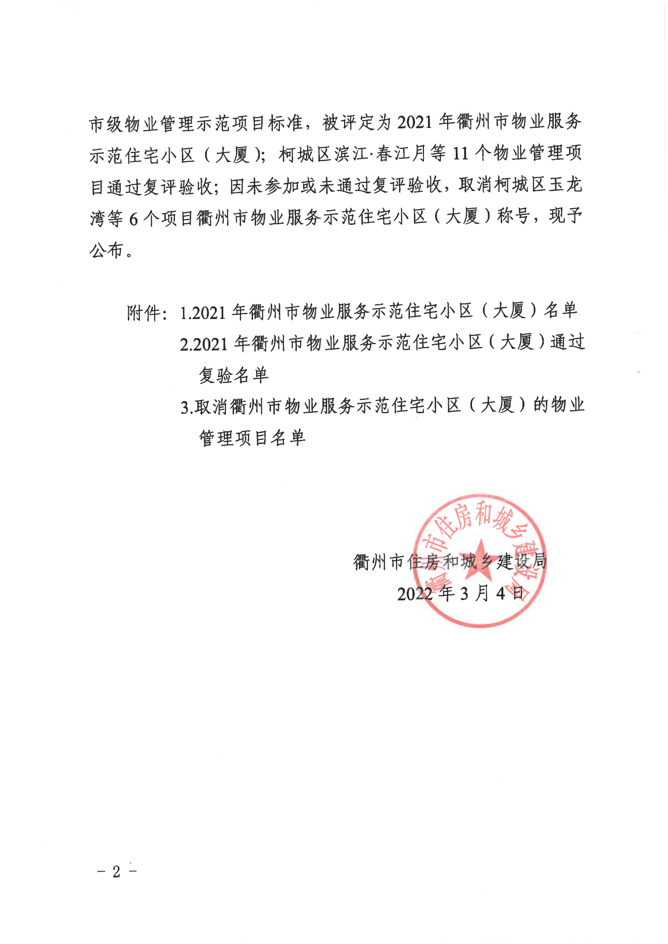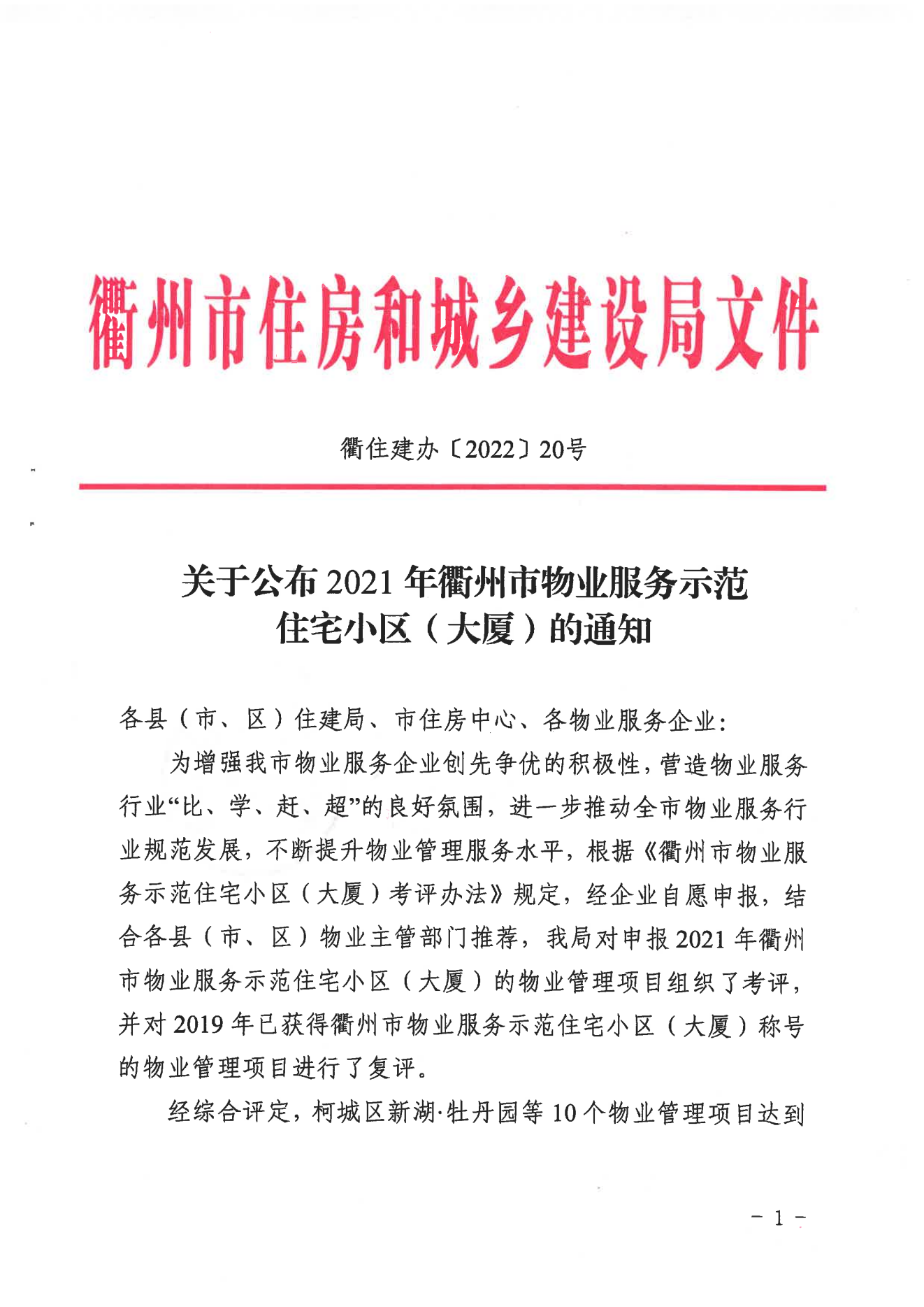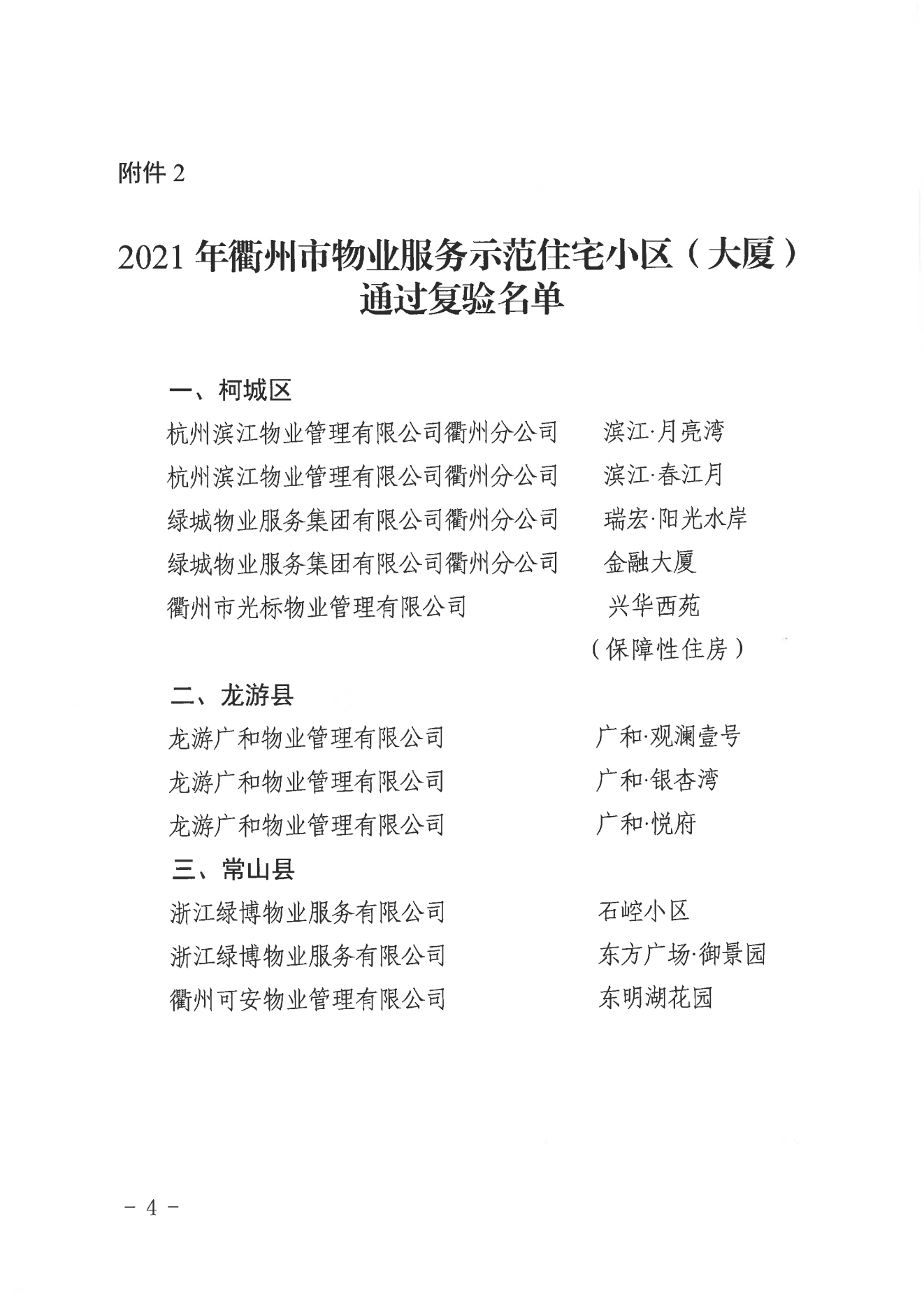 2021年衢州市物业服务示范住宅小区(大厦)发布