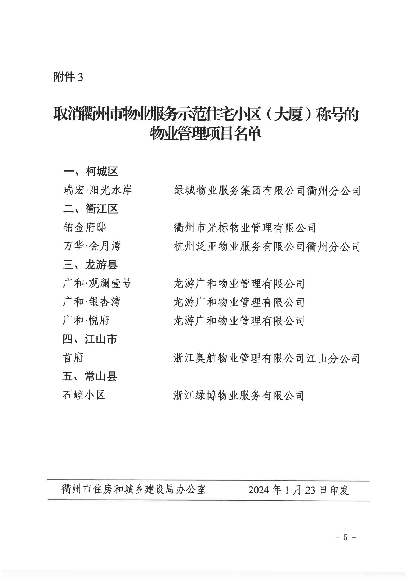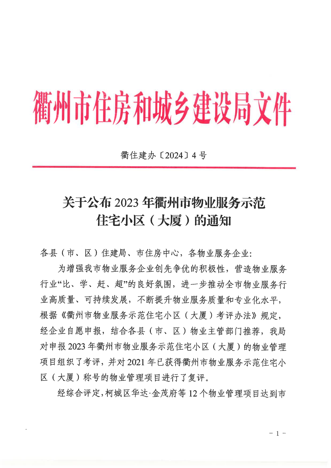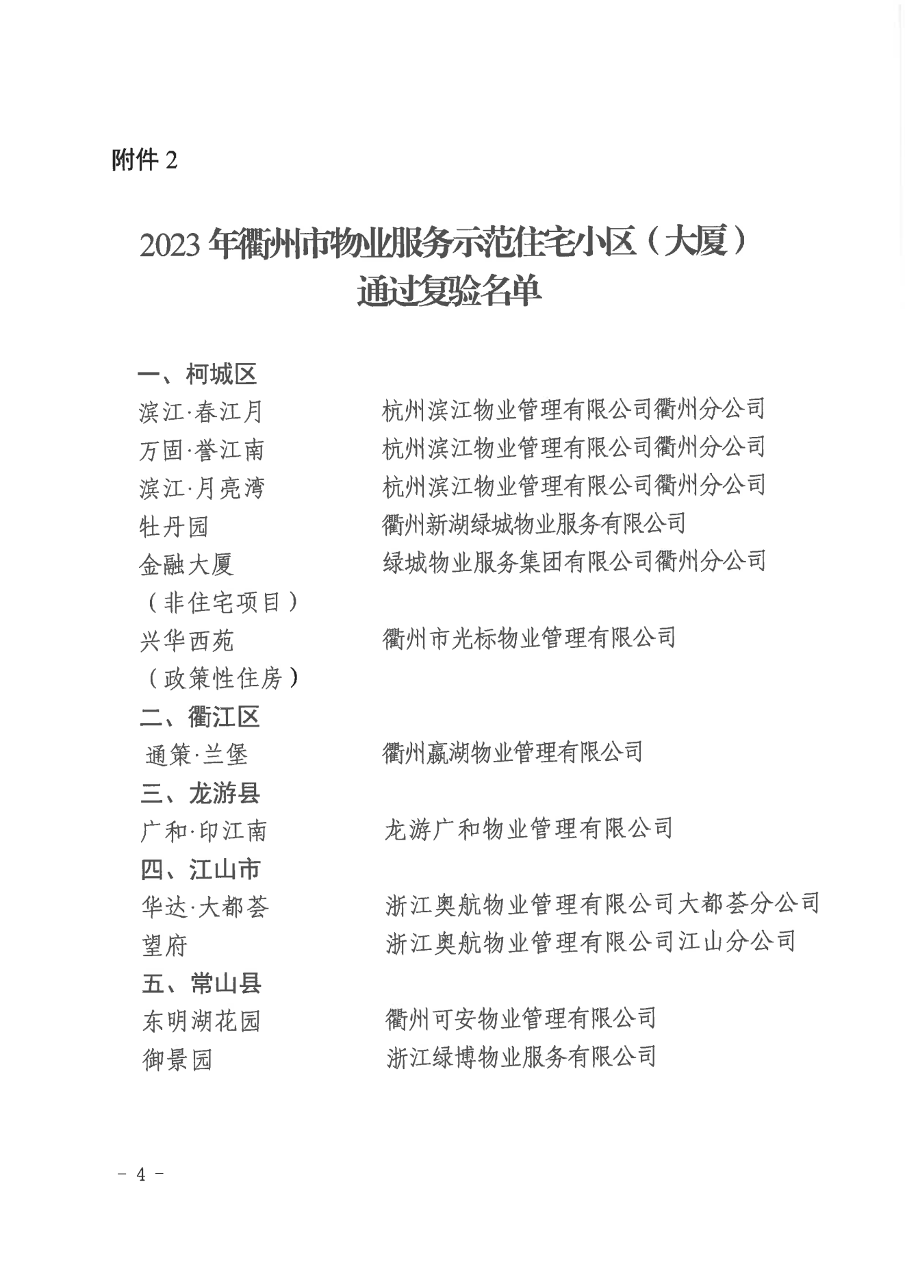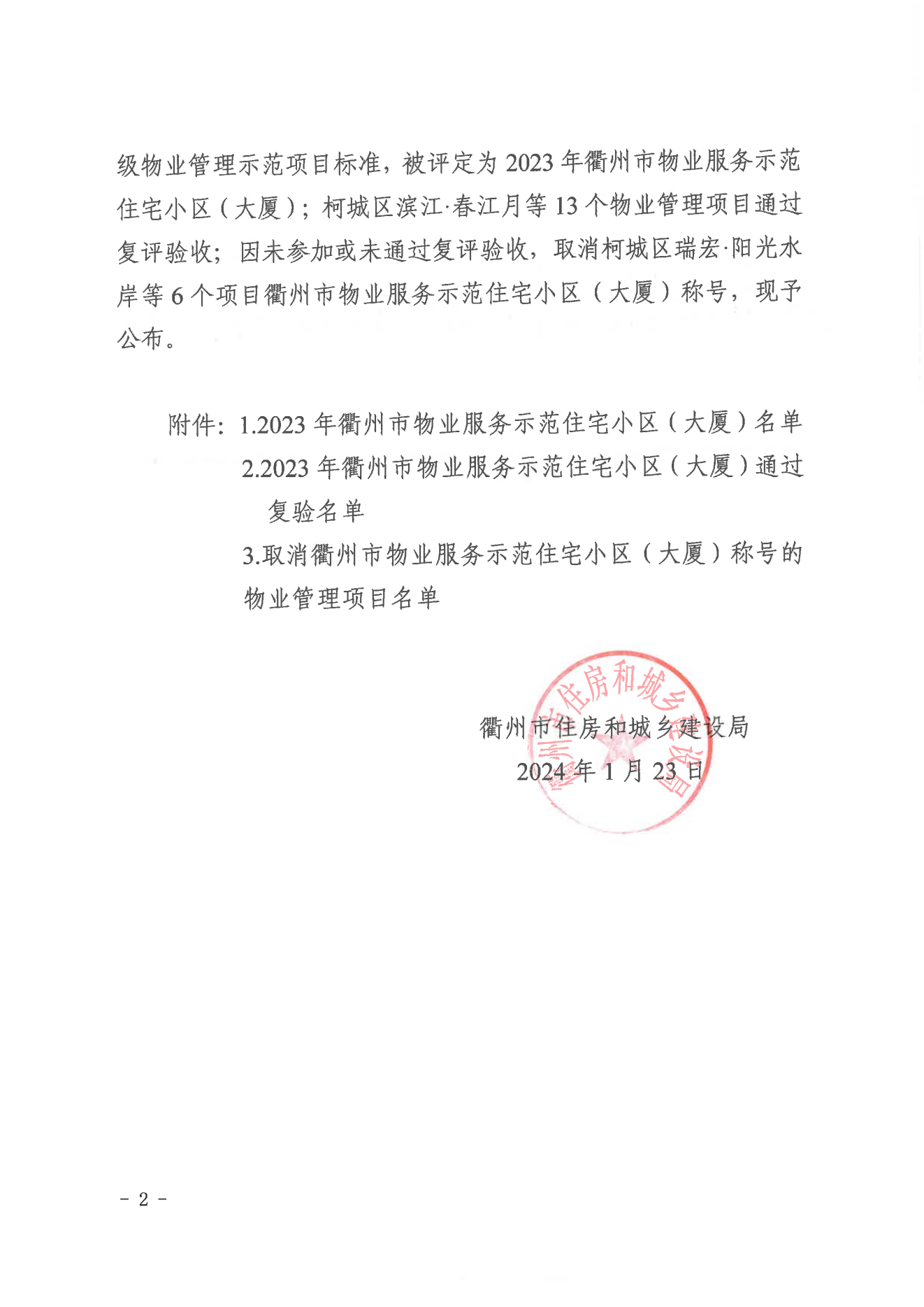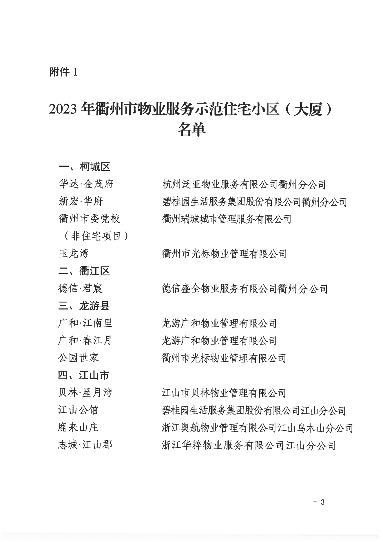 衢州市住房和城乡建设局发布“2023年衢州市物业服务示范住宅小区(大厦)的通知”